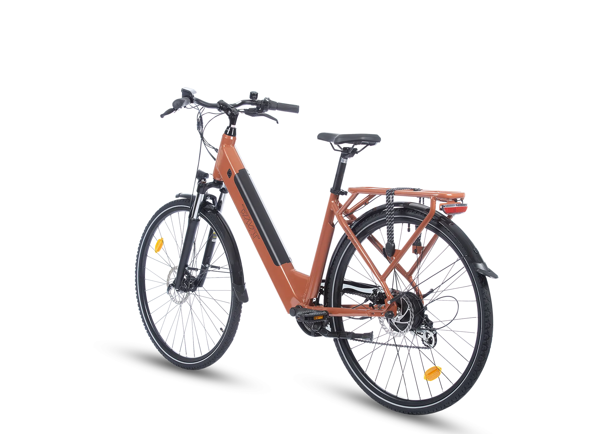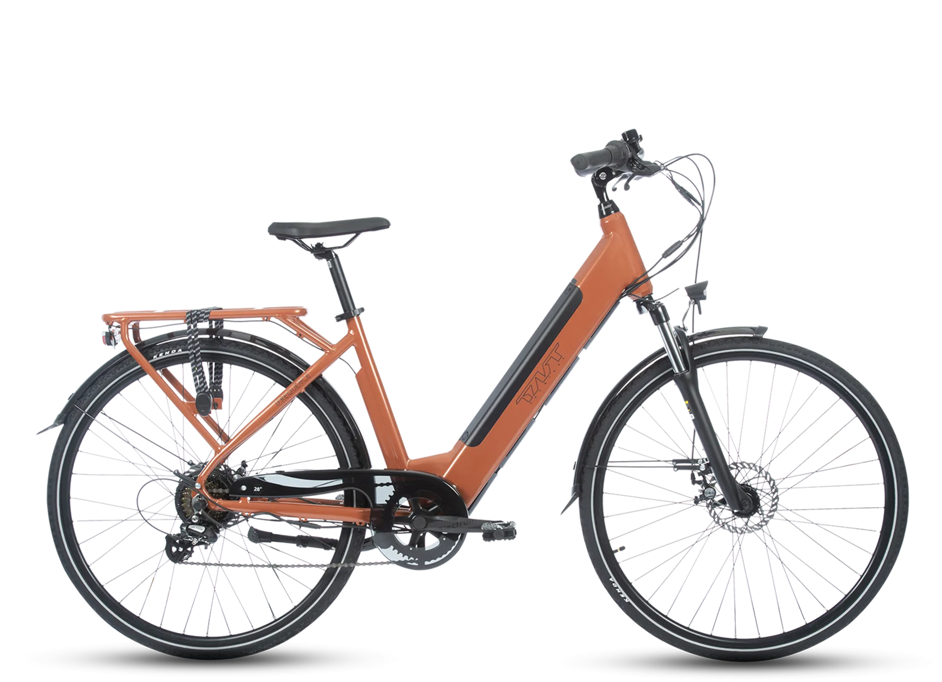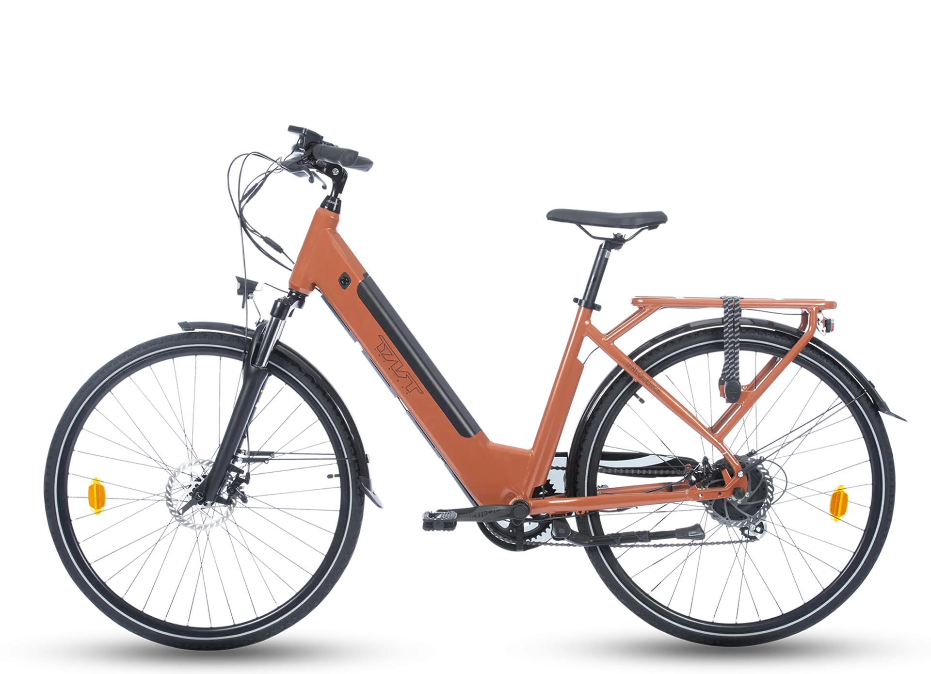 Ce vélo séduit également par son design moderne et fonctionnel. La batterie intégrée dans le cadre et le porte-bagages offrent une allure épurée sans compromettre la praticité. Disponible en terracotta ou vert sauge, le Fréquence s’impose comme un choix élégant et pratique.