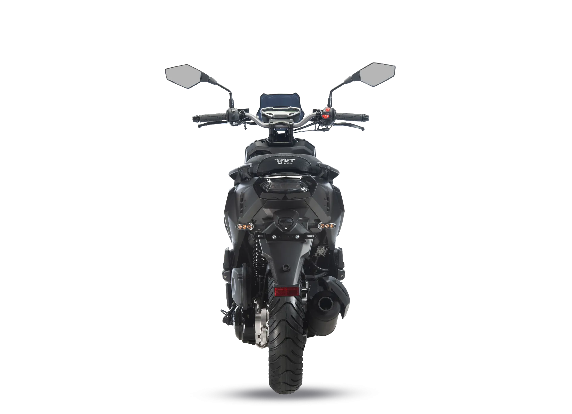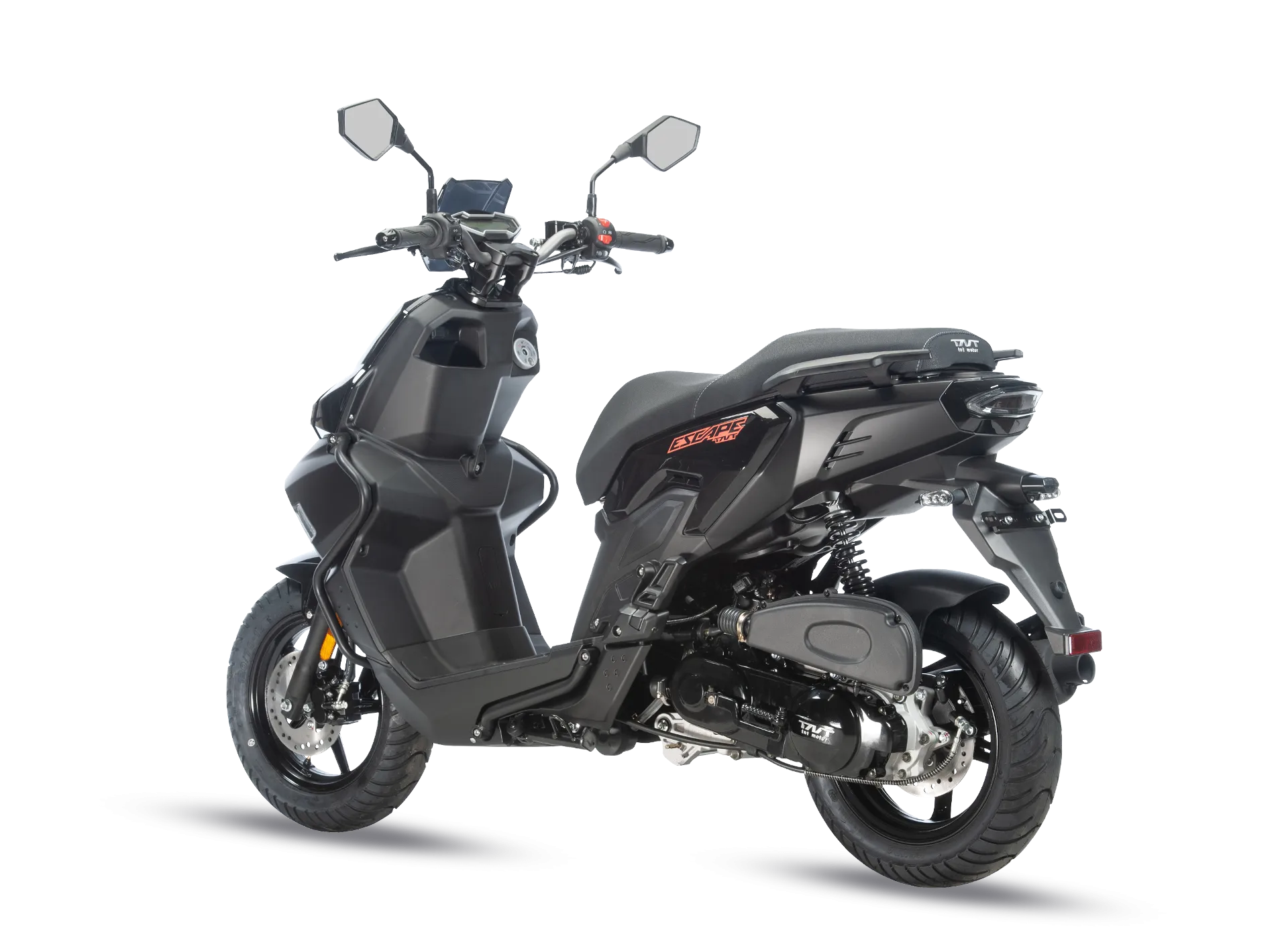 Conçu pour ceux qui cherchent à s’échapper du quotidien, l’Escape 50cc de TNT incarne la liberté à chaque coin de rue. Inspiré par l’esprit baroudeur, ce scooter est équipé de protections latérales tubulaires robustes et d’un phare doté d’une signature lumineuse, prêt à éclairer votre chemin, même dans les environnements les plus exigeants. Son carénage audacieux rappelle les lignes puissantes des trails routiers de haute cylindrée, faisant de l’Escape un véritable "SUV du scooter".